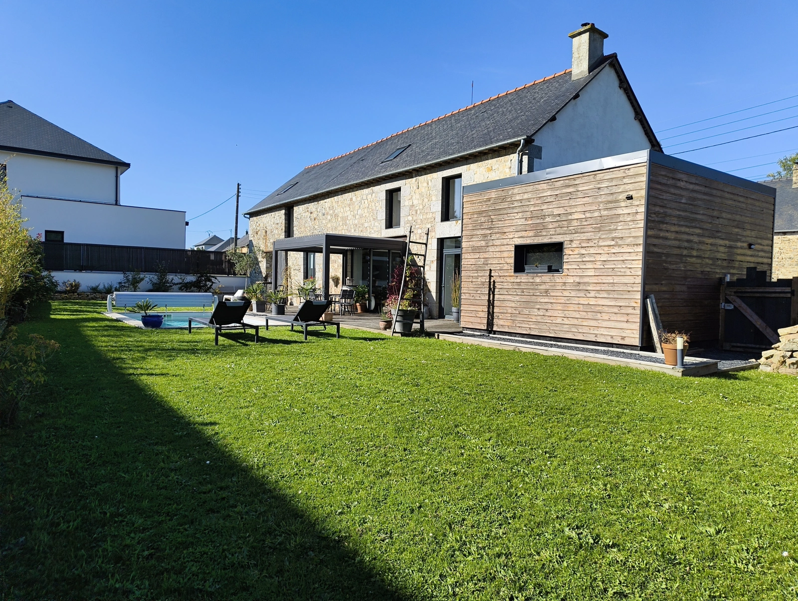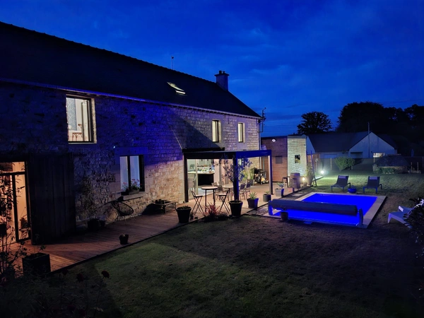Votre conseillère en immobilier de proximité, Marie Hélène Corcuff - 0609730979, mhcorcuff@noovimo.fr- vous présente sa nouveauté : À seulement 12 minutes des portes de Rennes, découvrez cette superbe longère de standing d'environ 180 m2, entièrement rénovée en 2020 2021, dans un esprit industriel chic et contemporain, alliant caractère, volumes et prestations de qualité. La maison s'ouvre sur une pièce de vie lumineuse de plus de 60 m2, sublimée par un sol en béton quartzé, une grande cuisine sur mesure ouverte, et de larges baies vitrées coulissantes offrant un véritable effet dedans-dehors vers la terrasse bois, le jardin paysager et la piscine. Le rez-de-chaussée propose une suite parentale de plain-pied avec dressing et salle de bain complète (baignoire et douche), ainsi qu'un WC indépendant, permettant une vie de plain-pied confortable. À l'étage, une mezzanine distribue trois chambres, dont une seconde suite avec salle d'eau, ainsi qu'une grande salle de bain familiale équipée d'une baignoire d'angle et d'une douche. L'ensemble est implanté sur un terrain clos et paysager de plus de 600 m2, sans vis-à-vis, offrant un cadre intimiste et convivial, avec piscine chauffée, pergola avec rideaux latéraux, four à pizza extérieur pour les moments de partage, et garage avec porte motorisée. Prestations de qualité : poêle à granulés, VMC double flux, visiophone, larges baies vitrées, matériaux soignés et finitions contemporaines. Situation pratique et recherchée : accès rapide à la gare, bus scolaires à proximité, environnement calme tout en restant proche des commodités et des grands axes. Une maison rare, mêlant charme de l'ancien, confort moderne et esprit contemporain, idéale pour une famille ou pour les amateurs de biens de caractère.